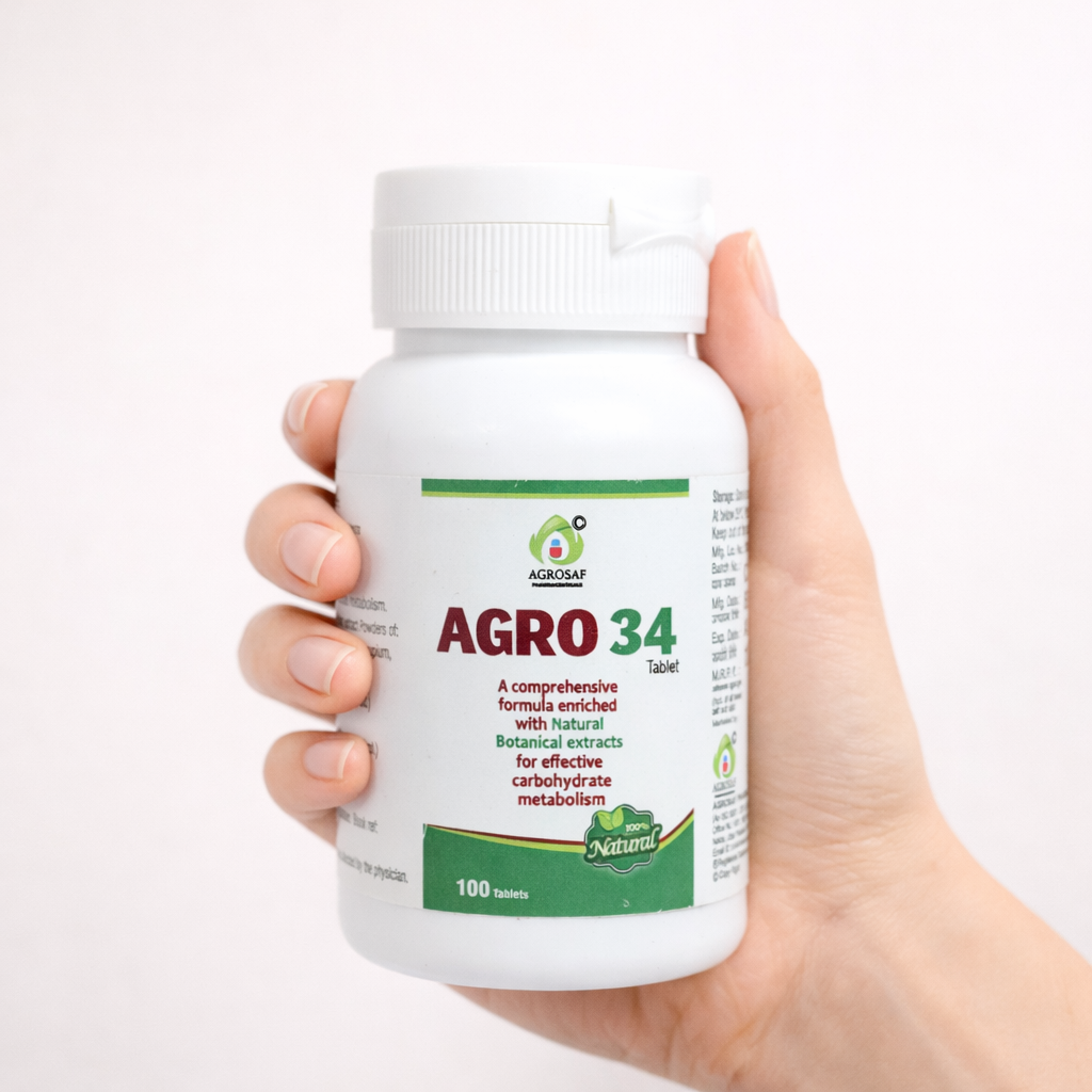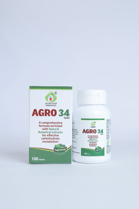 Agrosaf Agro 34 Tablet is a thoughtfully crafted wellness formula enriched with natural botanical extracts to support everyday metabolic balance. Designed to complement an active lifestyle, it helps maintain efficient carbohydrate metabolism as part of a balanced routine.