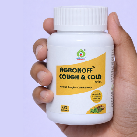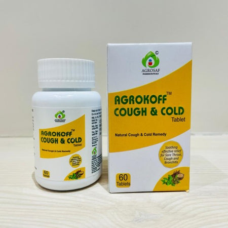 Agrokoff Cough & Cold Tablet is a natural herbal formulation designed to provide effective relief from cough, cold, sore throat, and chest congestion. Enriched with traditional Ayurvedic herbs, it helps soothe throat irritation, loosen mucus, and support respiratory comfort during seasonal changes and infections.