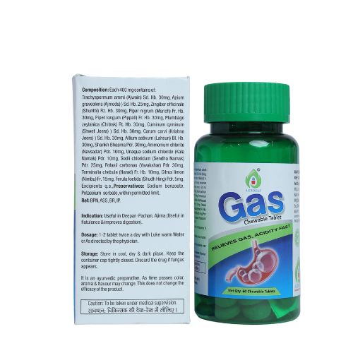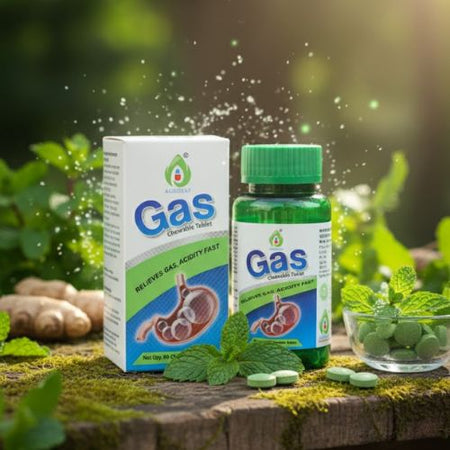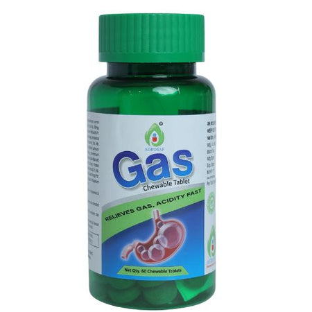 Agrosaf Gas Chewable Tablets are formulated to support everyday digestive comfort and help ease bloating, gas, and acidity-related discomfort. The convenient chewable format makes them easy to use anytime, anywhere as part of a balanced lifestyle.