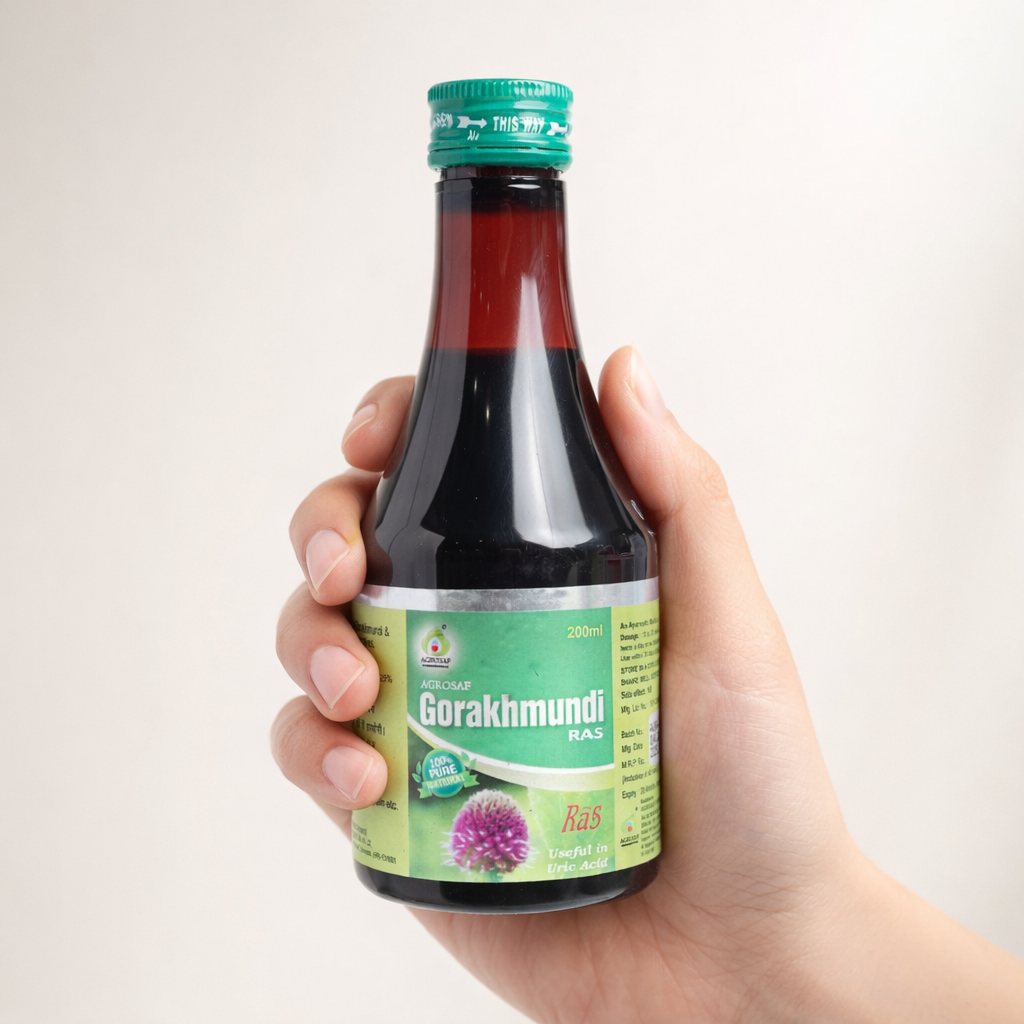 Agrosaf Gorakhmundi Ras is a traditional Ayurvedic formulation crafted using natural Gorakhmundi extract to support everyday wellness and vitality. It is prepared following classical Ayurvedic principles for routine health maintenance.