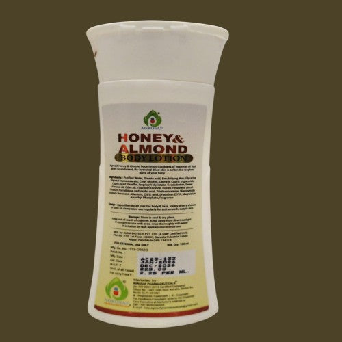 Agrosaf Honey & Almond Body Lotion is a lightweight, fast-absorbing body lotion designed to nourish and hydrate everyday skin. Enriched with the goodness of honey and almond, it helps keep skin soft, smooth, and comfortable without a greasy feel.