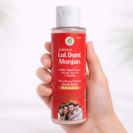 Agrosaf Lal Dant Manjan is a traditional Ayurvedic tooth powder formulated to support strong teeth, healthy gums, and daily oral hygiene. Crafted with time-tested herbs, it helps maintain oral cleanliness and freshness as part of a regular dental care routine.