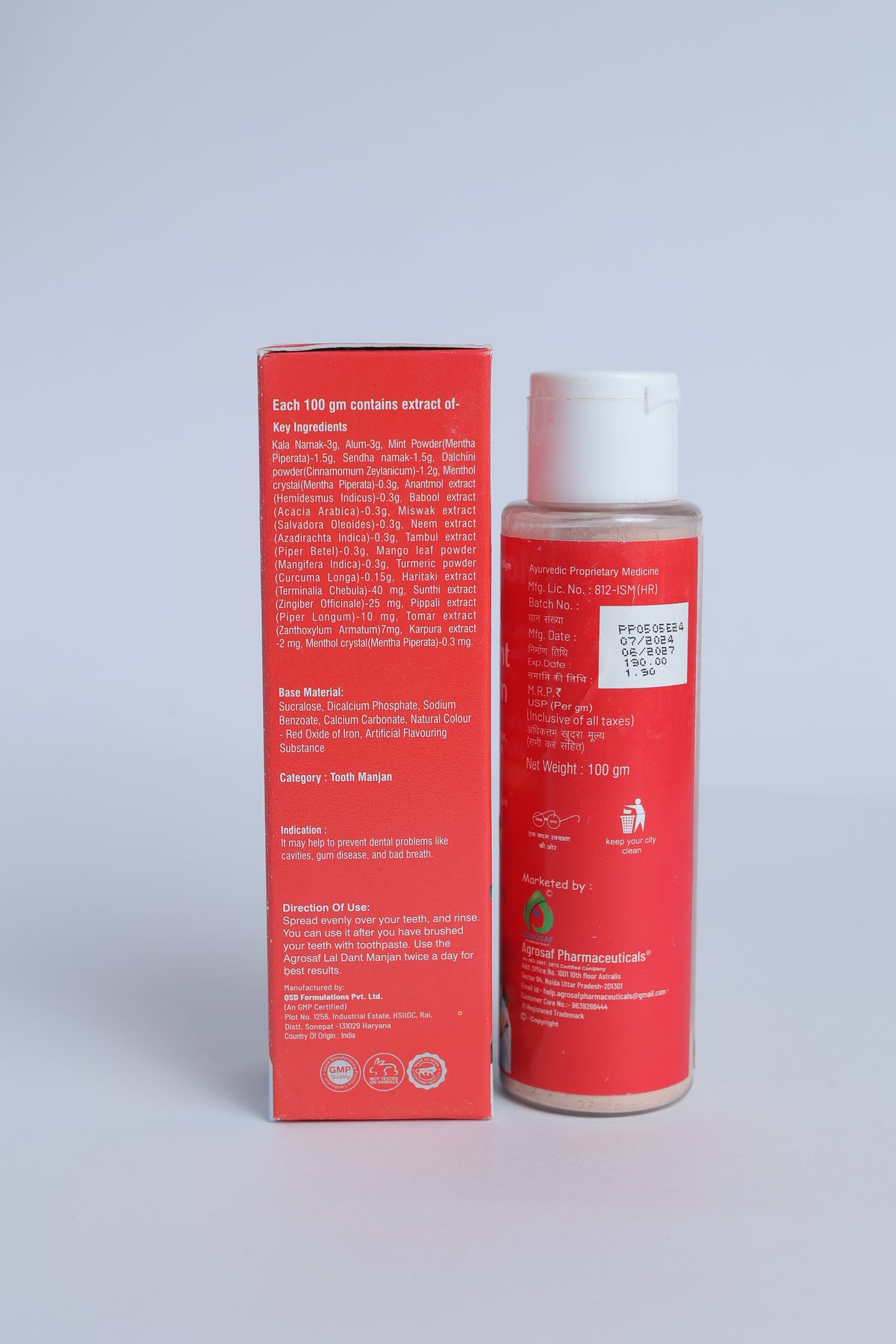 Agrosaf Lal Dant Manjan 100g | Strong Teeth & Gum Care