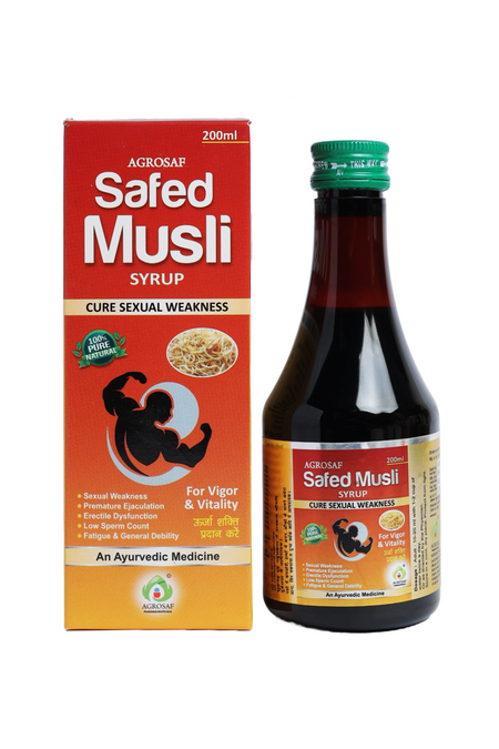 Agrosaf Safed Musli is a classical Ayurvedic formulation crafted with a blend of Safed Musli, Shatavari, Ashwagandha, Shilajit and select herbs to support everyday strength, stamina and overall wellness.
