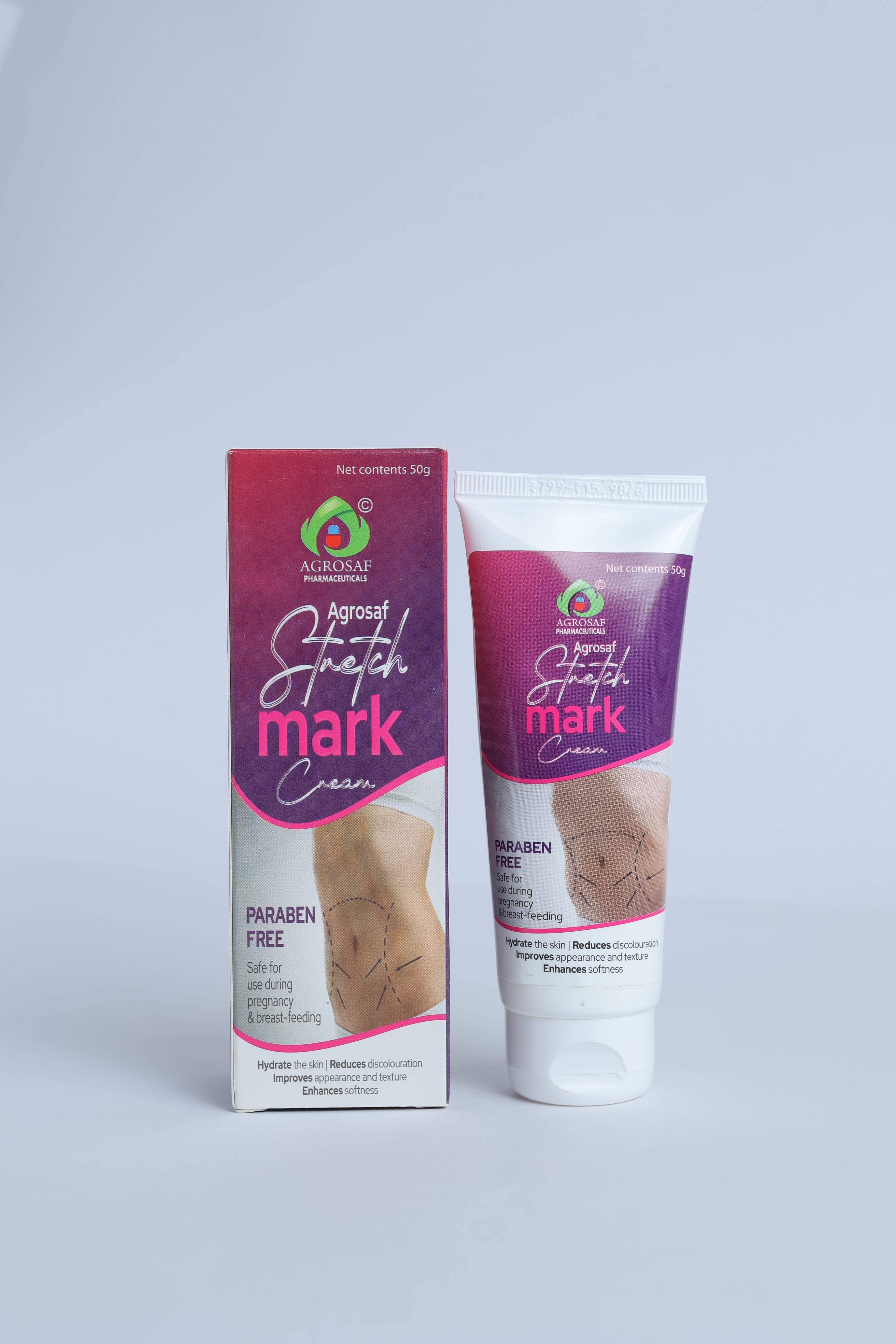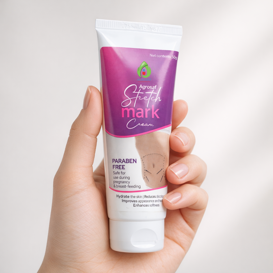 Agrosaf Stretch Mark Cream is a gentle, paraben-free skincare formula designed to support skin elasticity and improve the appearance of stretch marks. Ideal for daily use, it helps keep skin hydrated, soft, and smooth as part of a regular body care routine.