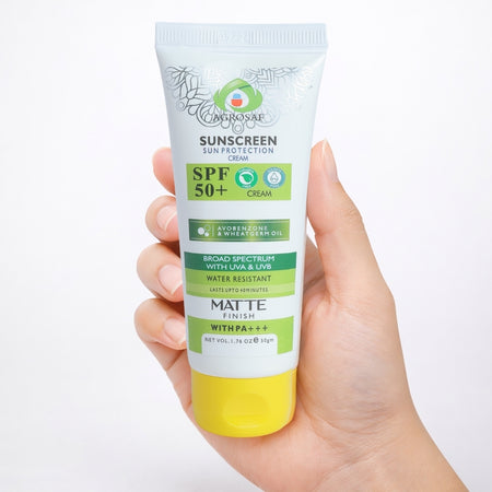 Agrosaf Sunscreen SPF 50+ is a lightweight sun protection cream designed to shield the skin from daily sun exposure. With broad-spectrum protection, it helps guard against UVA and UVB rays while keeping the skin comfortable, matte, and non-greasy throughout the day.