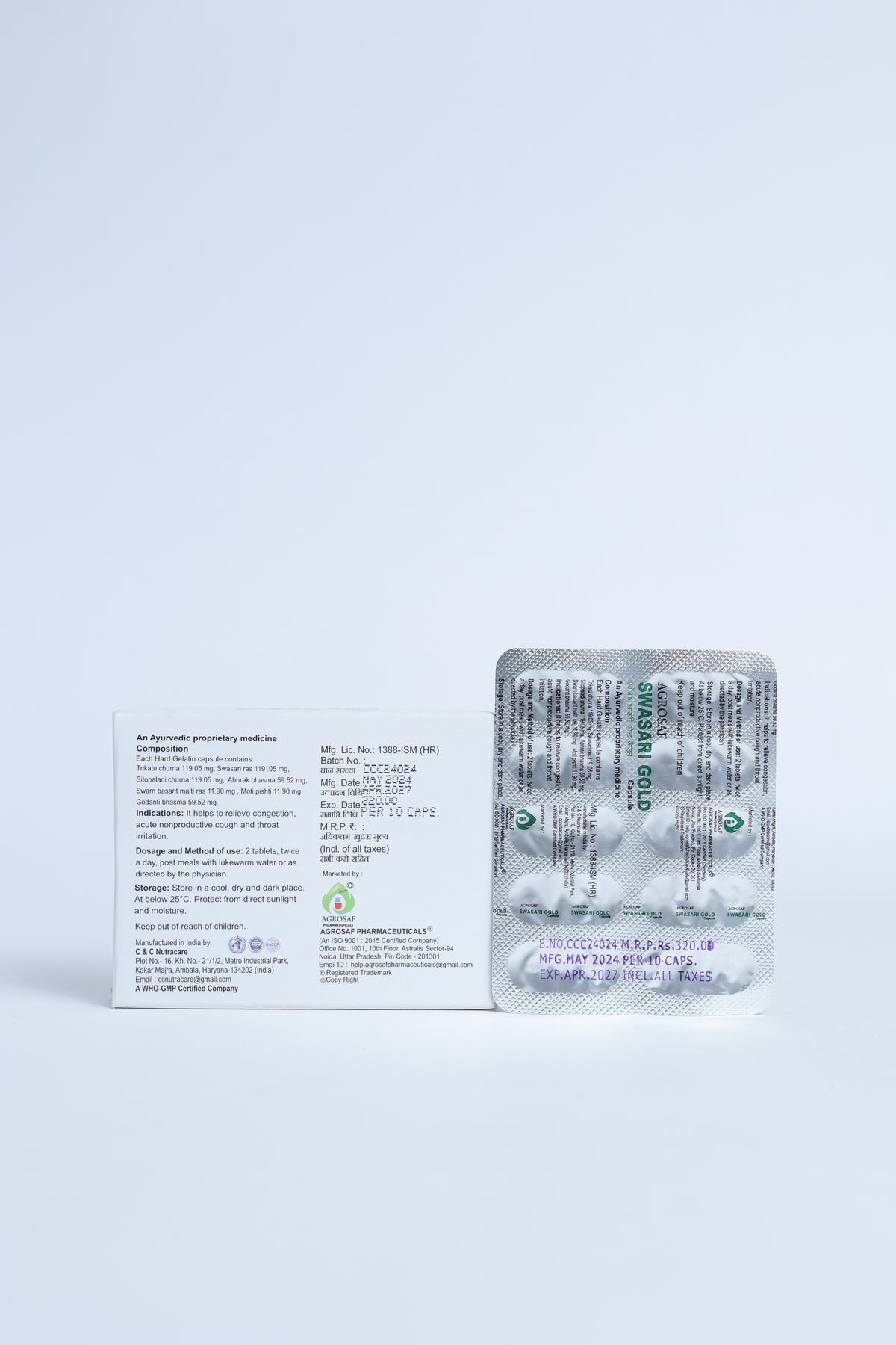 Agrosaf Swasari Gold Capsule – Respiratory & Lung Wellness Support (1×10 Capsules)