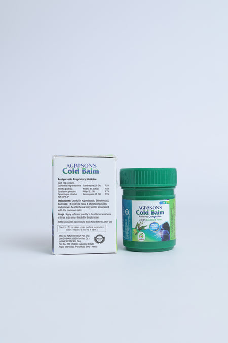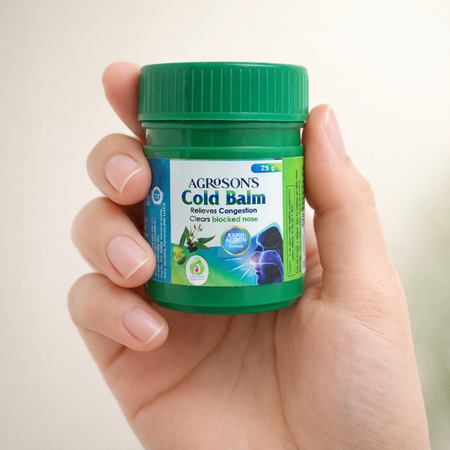 AGROSON’S Cold Balm is a powerful herbal pain-relief balm formulated with natural essential oils to provide fast and effective relief from cold, headache, nasal congestion, body pain, and muscular discomfort. Its soothing aroma and warming action help clear blocked nose, ease breathing, and relax tired muscles.