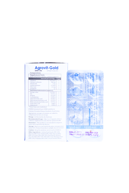 AGROVIT GOLD Capsule is a balanced calcium and vitamin supplement formulated to support bone strength, nerve health, and everyday metabolic function. Its combination of active vitamin D, calcium, and B-complex vitamins helps meet daily nutritional needs and supports overall wellbeing.