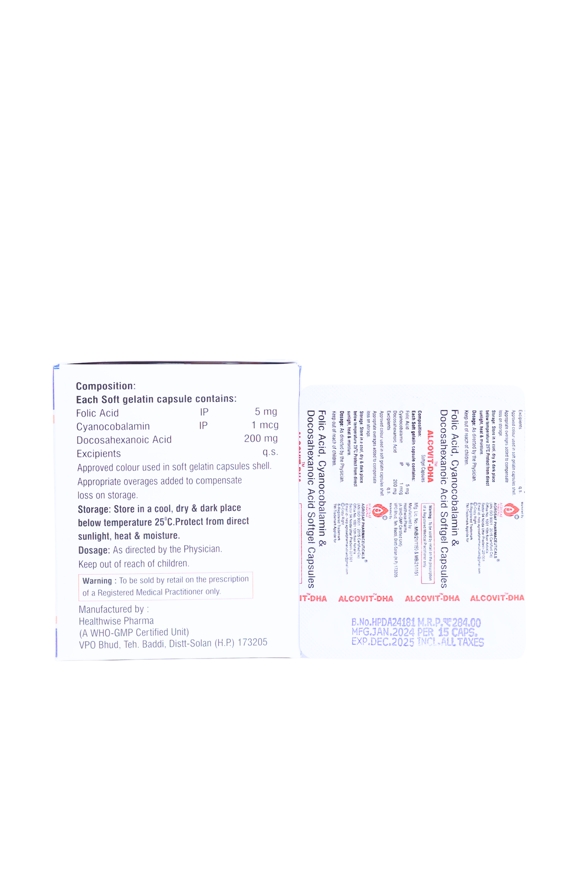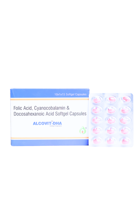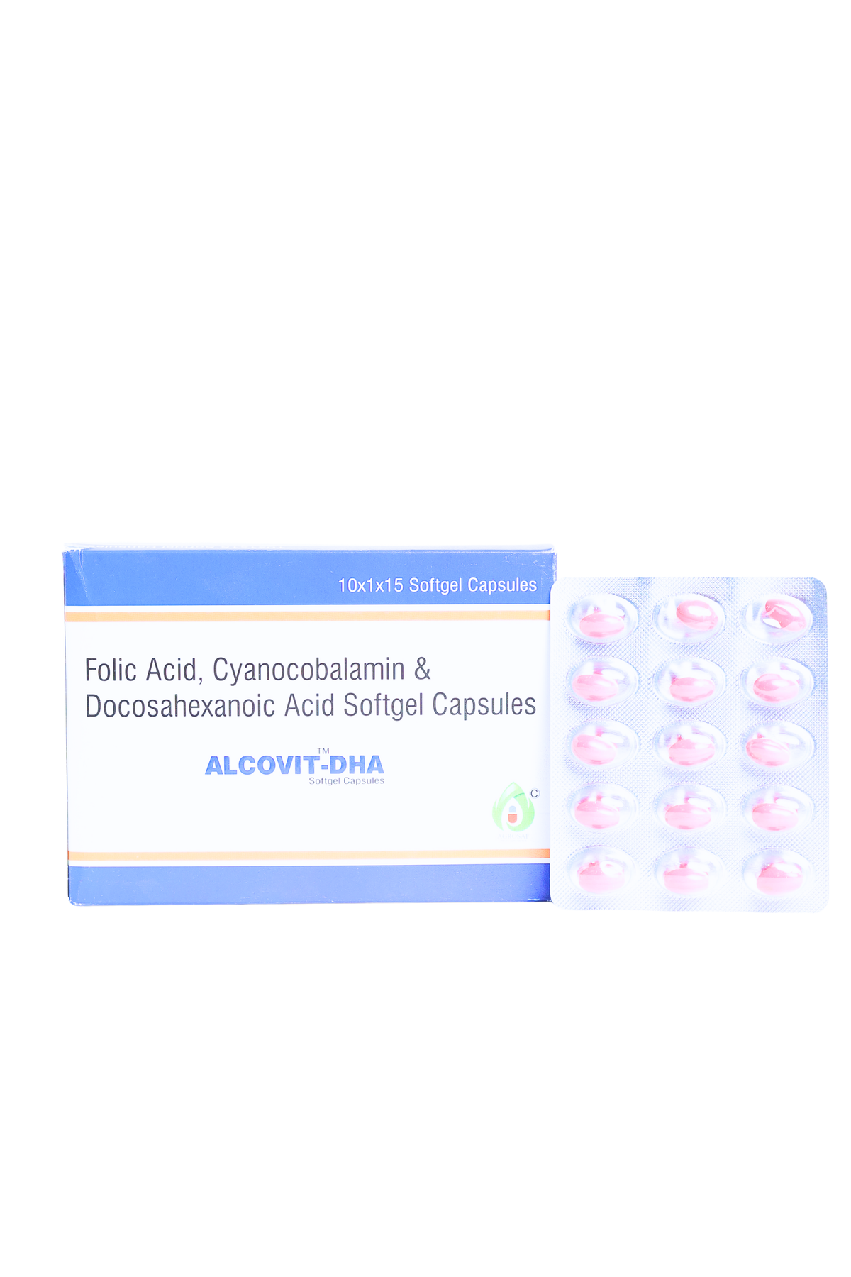 Alcovit-DHA Capsule is a nutritional supplement formulated with DHA, folic acid, and vitamin B12 to support brain health, nervous system function, and overall wellness. It helps meet daily nutritional needs during periods requiring enhanced cognitive and metabolic support.