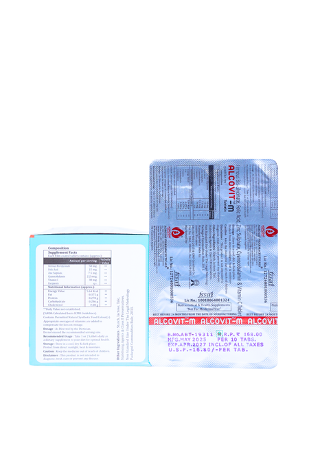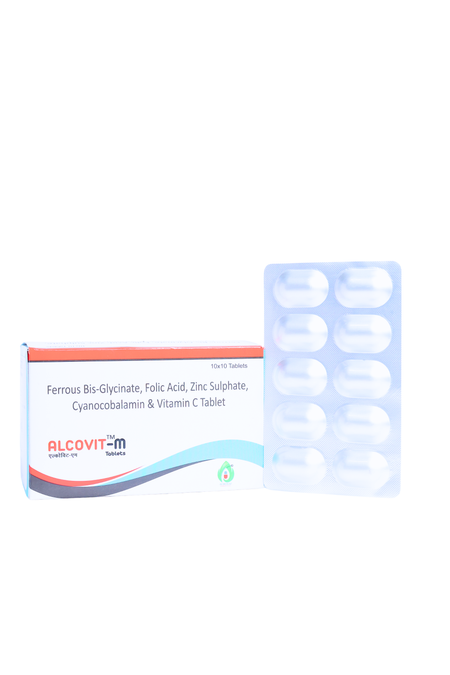 Alcovit M Tablet is a comprehensive iron and vitamin formulation crafted to support everyday blood health, energy and nutritional balance. It blends bioavailable iron with essential vitamins for routine vitality support.