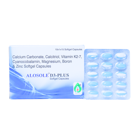 Alosole-D3 Plus Capsule is a balanced calcium and vitamin supplement formulated to support bone strength, muscle function, and overall skeletal health. Its advanced combination of minerals and vitamins helps improve calcium absorption and supports daily bone metabolism.