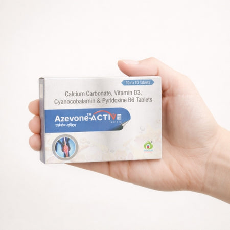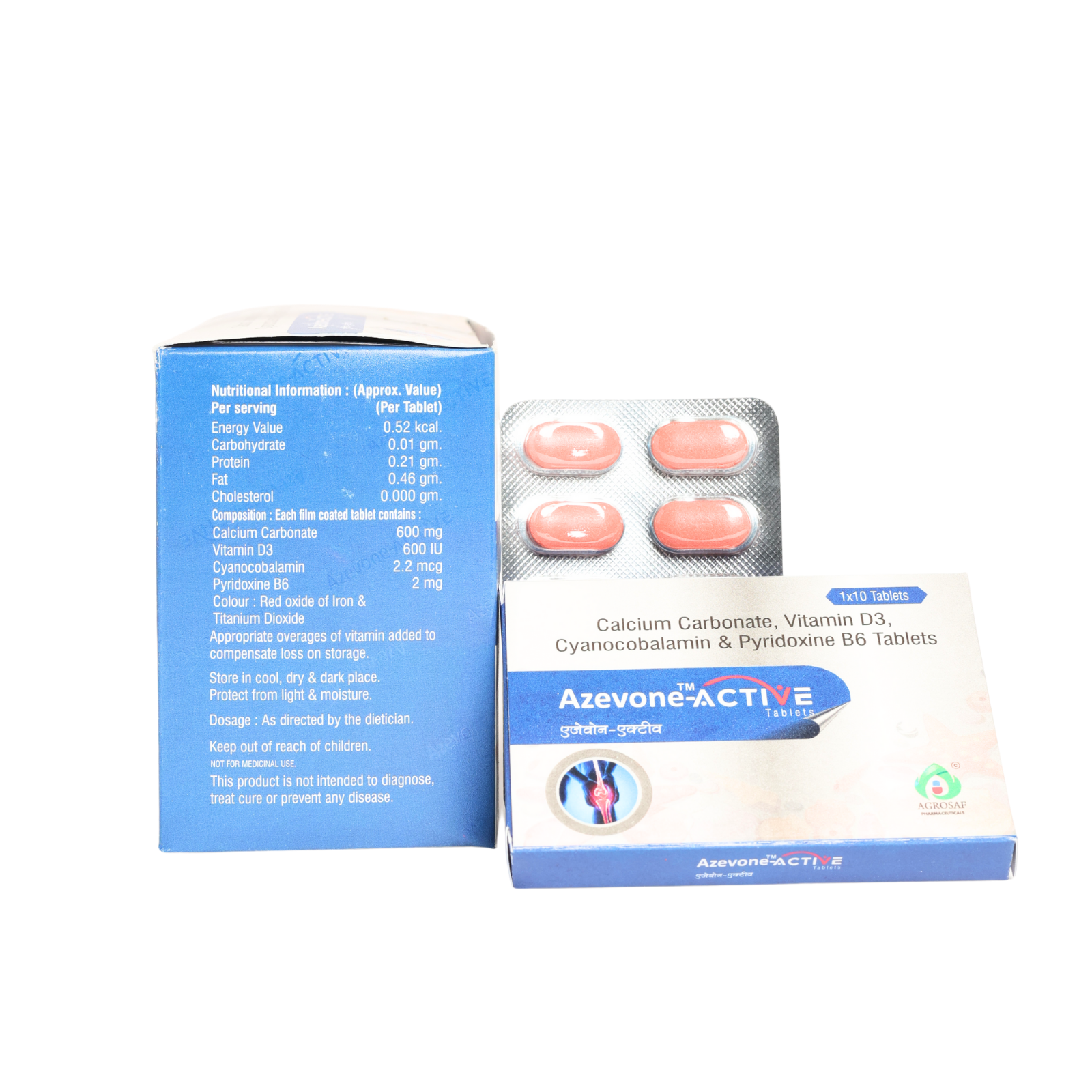 Azevone Active Tablet is a balanced calcium and vitamin formulation designed to support everyday bone strength, nerve health and overall mineral balance. It combines calcium, vitamin D3 and essential neuro-vitamins for routine wellness support.