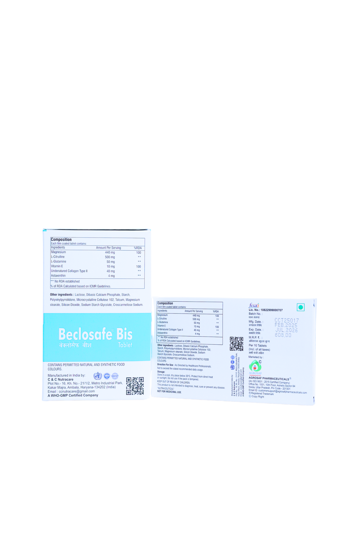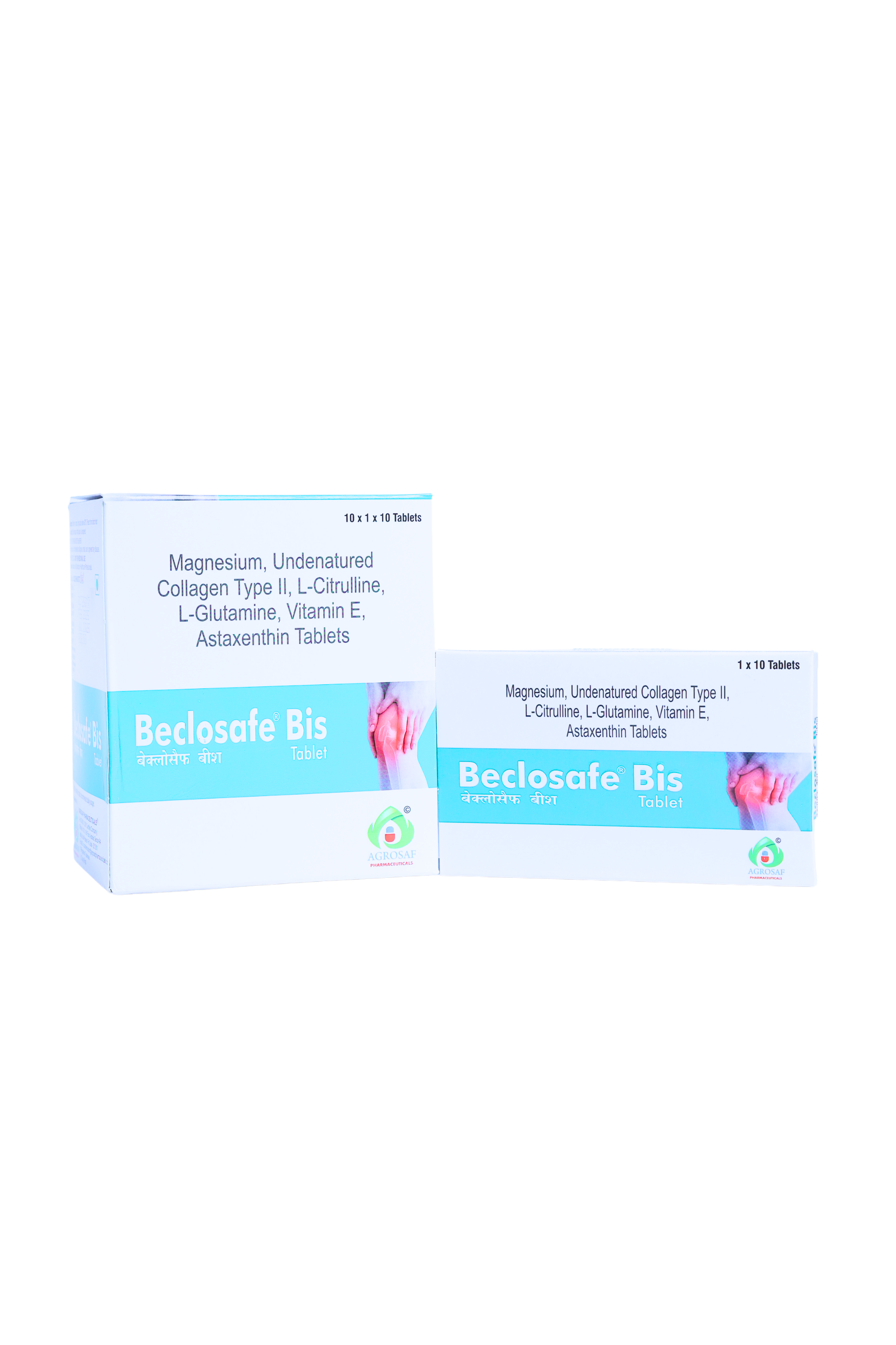 Beclosafe BIS Tablet is a comprehensive wellness formulation designed to support everyday joint strength, muscle recovery and overall mobility. It blends essential minerals, collagen, amino acids and antioxidants for active lifestyle support.