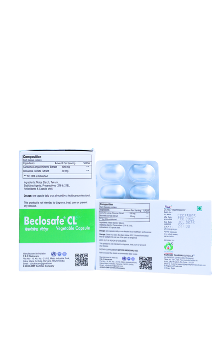 Beclosafe CL Capsule is a premium herbal formulation crafted to support everyday joint comfort, flexibility and mobility. It combines standardized plant extracts to fit naturally into your daily wellness routine.