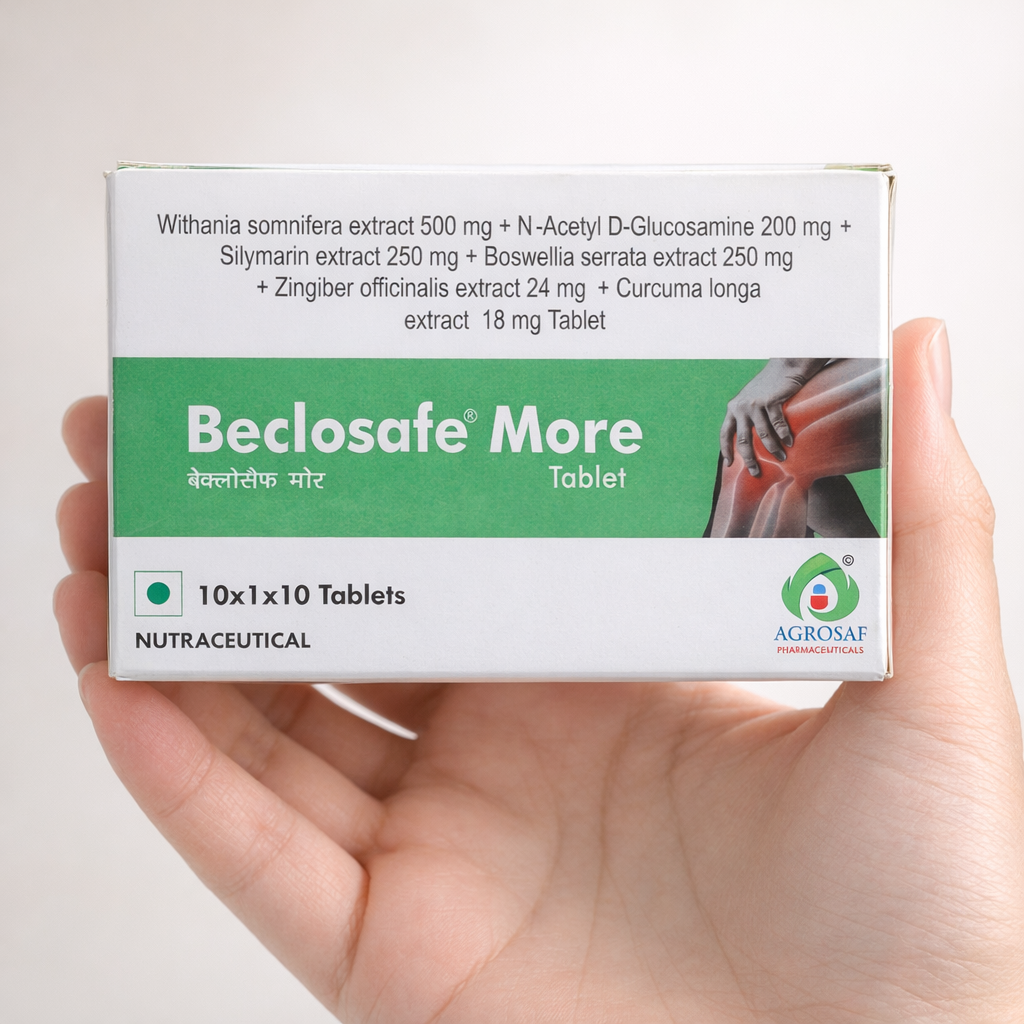 Beclosafe More Tablet is a herbal joint-support formulation crafted to support everyday joint comfort, flexibility and long-term mobility. It blends traditional plant extracts with supportive nutrients for routine musculoskeletal wellness.