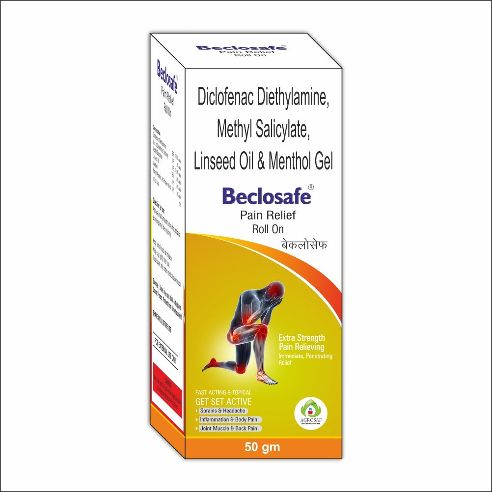 Beclosafe Pain Relief Roll On is an easy-to-use topical solution designed to support quick relief from everyday muscle and joint discomfort. The roll-on format allows mess-free, targeted application, making it ideal for active routines and on-the-go comfort.