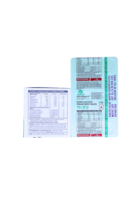 Bell-OK Capsule is a probiotic and prebiotic formulation crafted to support everyday digestive balance and gut wellness. It blends beneficial probiotics with FOS to fit naturally into your daily routine.
