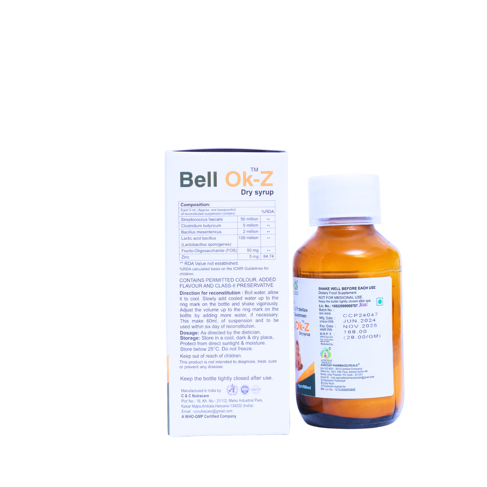 Bell OK-Z Syrup is a digestive health supplement with probiotics, prebiotics, and zinc to support everyday gut comfort. It fits easily into your routine to help maintain digestive balance.