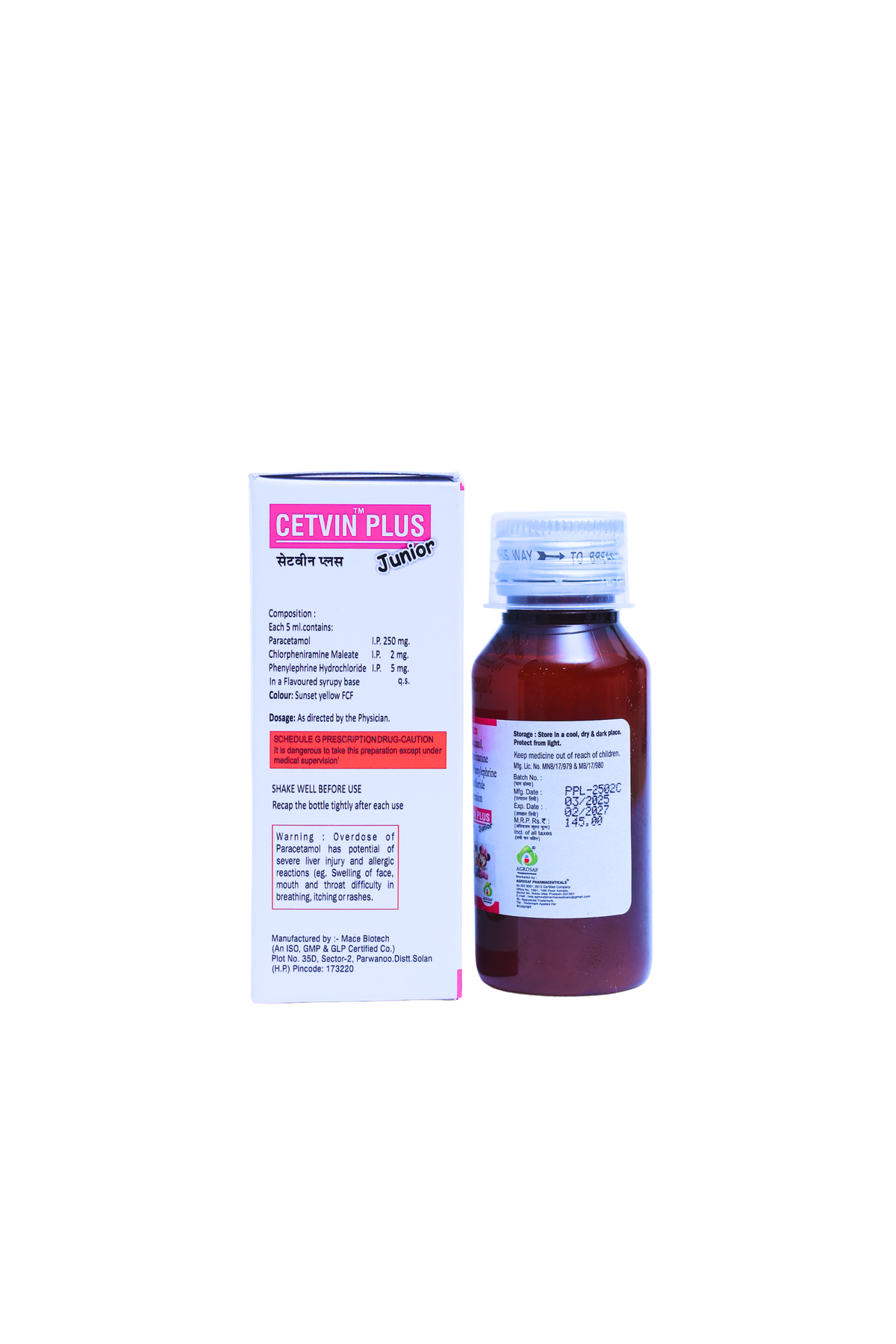 Cetvin Plus Junior Syrup is a child-friendly oral formulation designed to support everyday comfort and wellness in kids. It fits easily into short-term care routines under professional guidance.