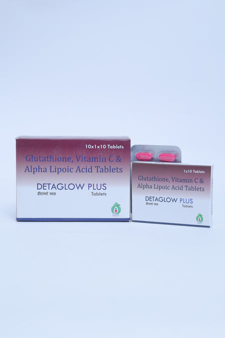 Detaglow Plus Tablet is an advanced antioxidant formulation crafted to support everyday skin brightness, clarity and overall wellness. It blends key antioxidants for routine skin nourishment.