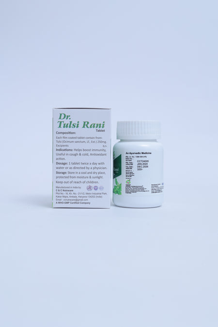 Agrosaf Dr. Tulsi Rani Tablet is a natural herbal supplement formulated with pure Tulsi to support immunity, respiratory comfort, and overall wellness. Traditionally valued for daily health balance, it fits easily into regular wellness routines.