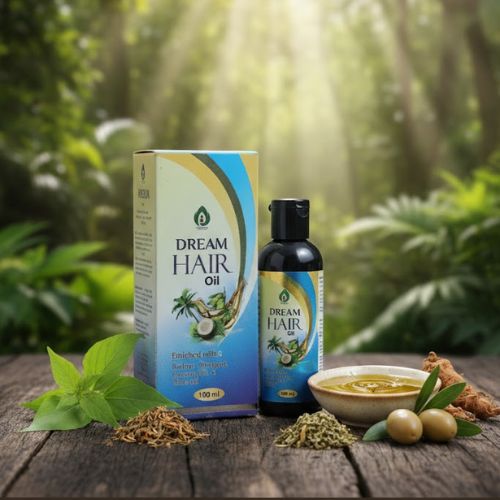 Dream Hair Oil is a nourishing hair care oil crafted with a blend of traditional herbs and natural oils to support healthier-looking hair and scalp care. Designed for regular use, it helps improve hair strength, softness, and overall hair vitality.