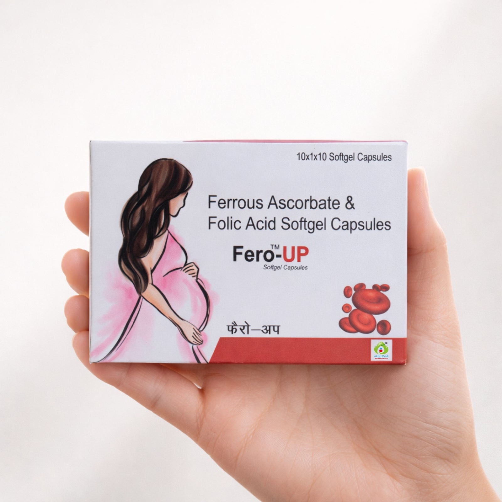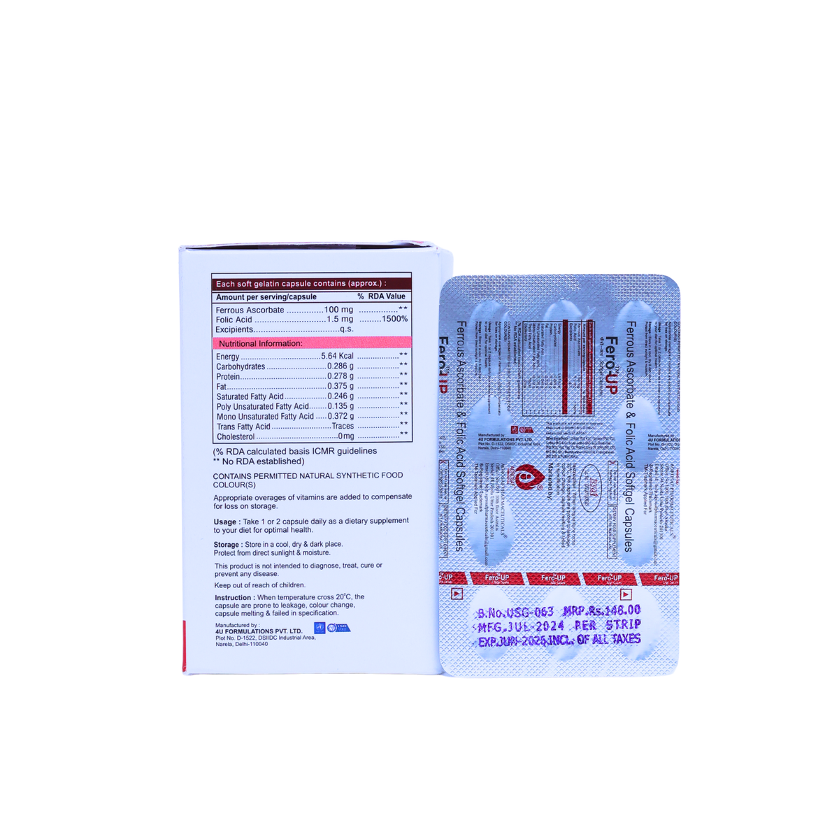 Fero Up Capsule is an iron and folic acid nutritional supplement formulated to support healthy blood formation and daily energy needs. It helps maintain optimal hemoglobin levels and supports overall vitality as part of a balanced lifestyle.