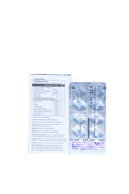 FIT 369 Capsule is a plant-based essential fatty acid supplement formulated to support heart health, metabolism, and overall wellness. Sourced from flaxseed oil, it provides a balanced combination of Omega-3, Omega-6, and Omega-9 for daily nutritional support.