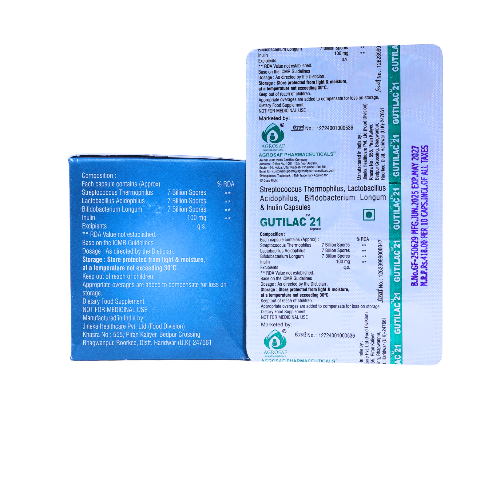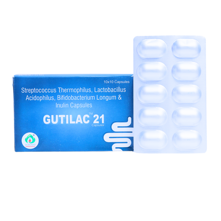 Gutilac 21 Capsule is a high-potency probiotic formulation crafted to support everyday digestive balance and a healthy gut microbiome. It blends three powerful probiotic strains with prebiotic inulin for routine intestinal wellness.