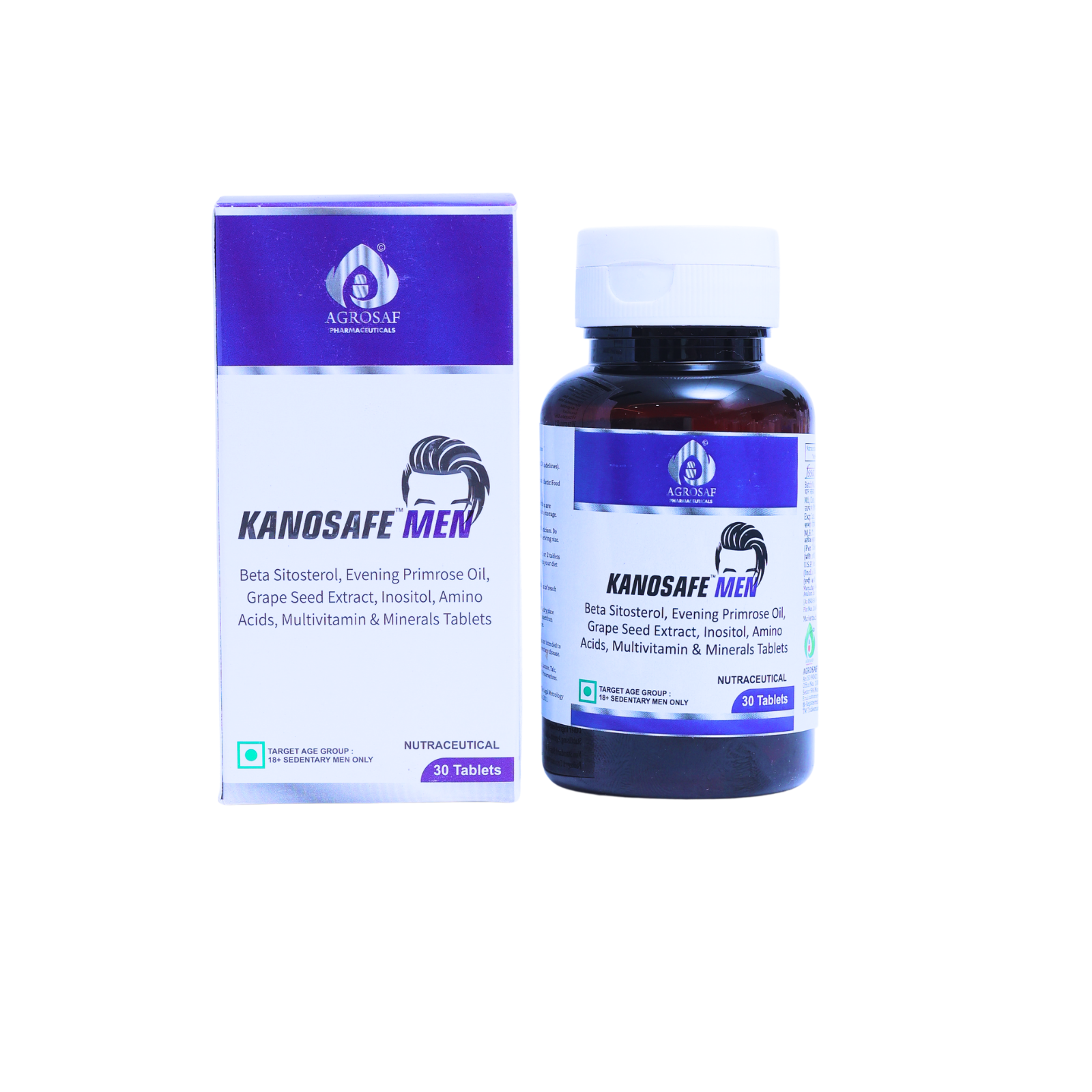 Kanosafe Men Tablet is a targeted hair nutrition formulation crafted to support everyday hair strength, growth and overall men’s vitality. It blends essential nutrients to fit naturally into daily grooming and wellness routines.
