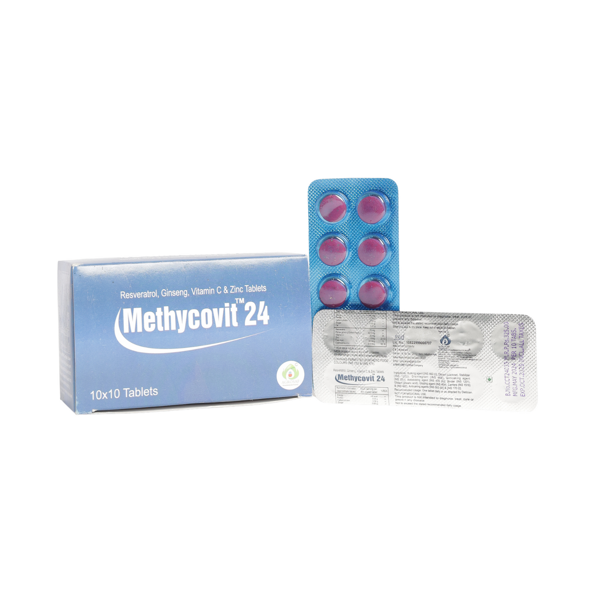 Methycovit 24 Tablet is a balanced multivitamin and antioxidant formulation crafted to support everyday energy, immunity and metabolic balance. It blends essential nutrients with ginseng and resveratrol for routine vitality support.