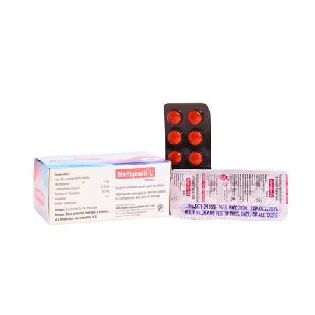 Methycovit-L Tablet is a specialized neuro-vitamin formulation crafted to support everyday nerve wellness, neurological balance and B-vitamin nutrition. It blends active forms of folate, vitamin B6 and vitamin B12 for routine vitality support.