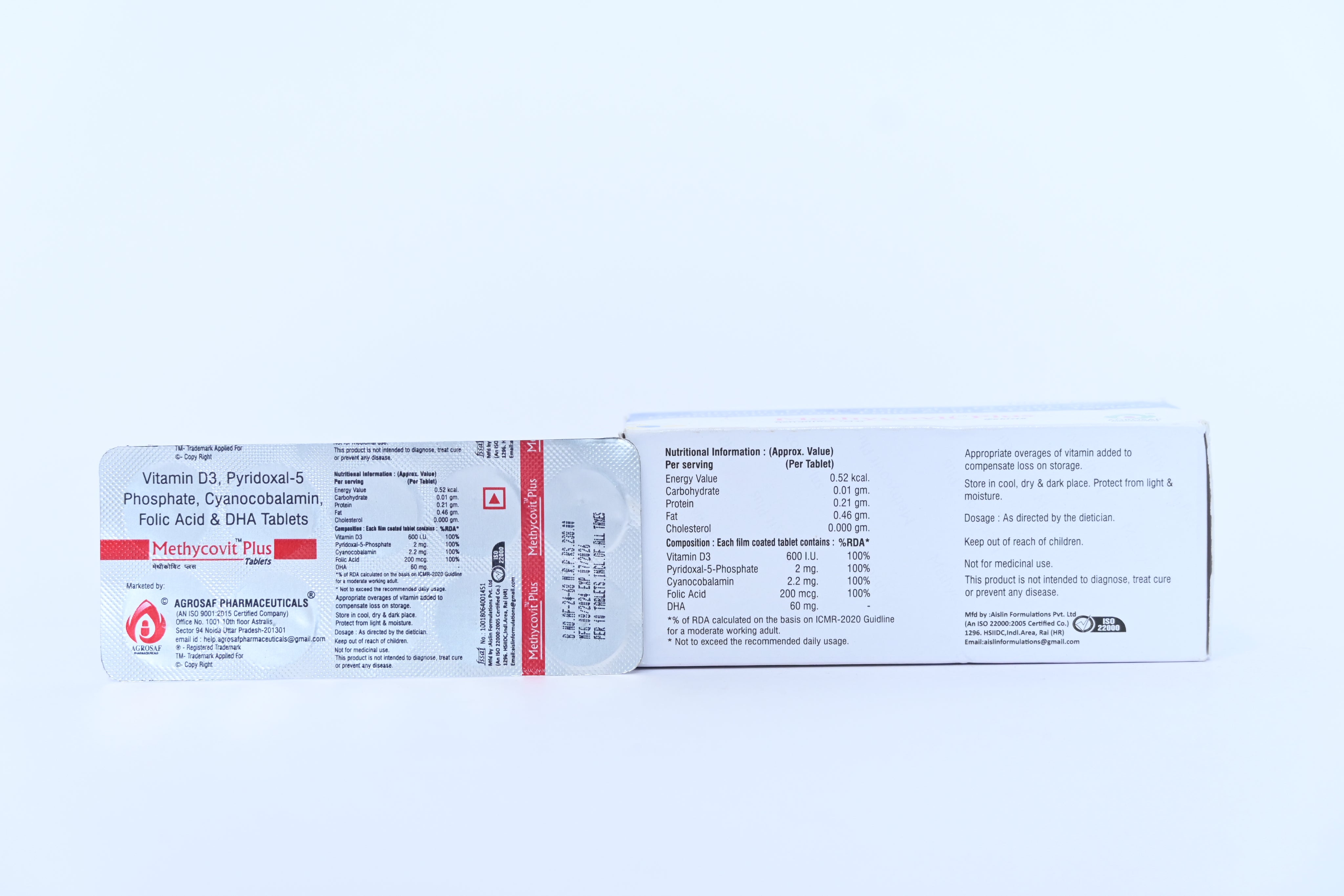 Vitamin D3, Folic Acid, Pyridoxal-5-Phosphate, Cyanocobalamin, DHA