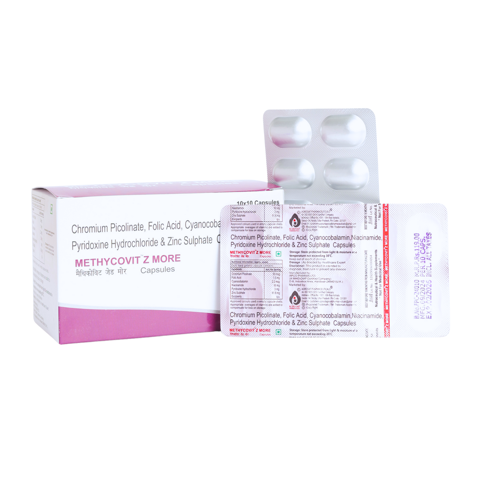 Chromium Picolinate, Folic Acid, Vitamin B12 (Cyanocobalamin), Niacinamide, Vitamin B6 (Pyridoxine), Zinc Sulphate