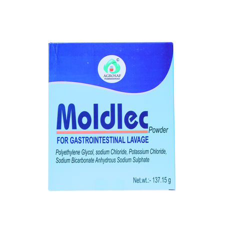 Moldlec Powder is a polyethylene glycol–based formulation with essential electrolytes, designed for use as part of bowel preparation routines under professional guidance. It is supplied as a powder for oral solution preparation.