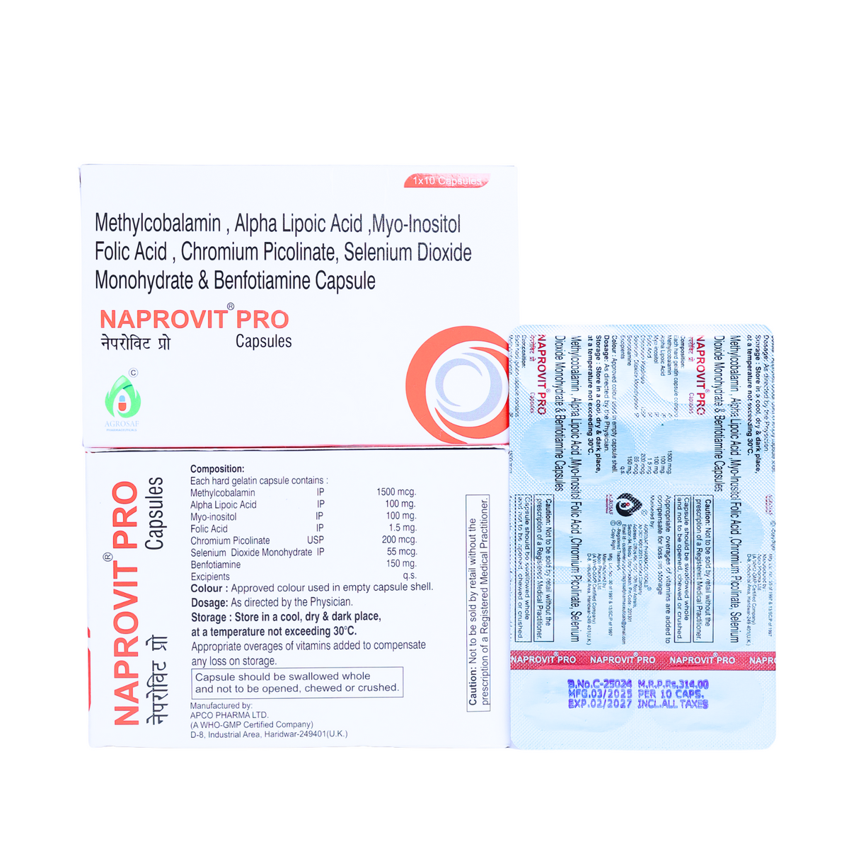 Naprovit Pro Capsule is a comprehensive nutritional formulation crafted to support everyday nerve wellness, energy metabolism and metabolic balance. It blends active vitamins with antioxidants for routine vitality support.