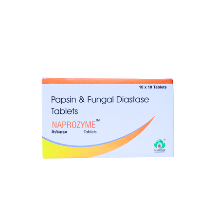 Naprozyme Tablet is a digestive enzyme formulation designed to support everyday digestion and nutrient absorption. It blends pepsin and fungal diastase for routine gastrointestinal comfort.