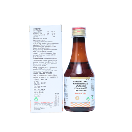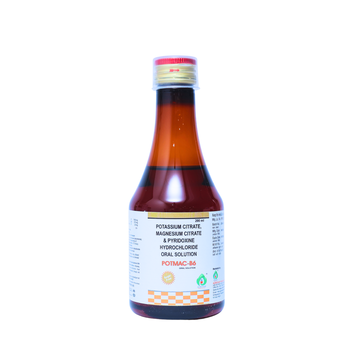 Potmac-B6 Oral Solution is a nutritional formulation containing potassium citrate, magnesium citrate, and vitamin B6, designed to support urinary wellness and maintain mineral balance as part of a healthy daily routine.