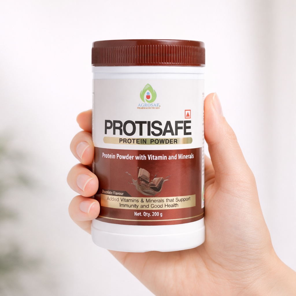 Agrosaf Protisafe Protein Powder is a balanced nutritional supplement formulated with protein, vitamins, and minerals to support everyday dietary needs. It is designed to complement daily nutrition and help maintain overall strength, energy, and wellness as part of an active lifestyle.
