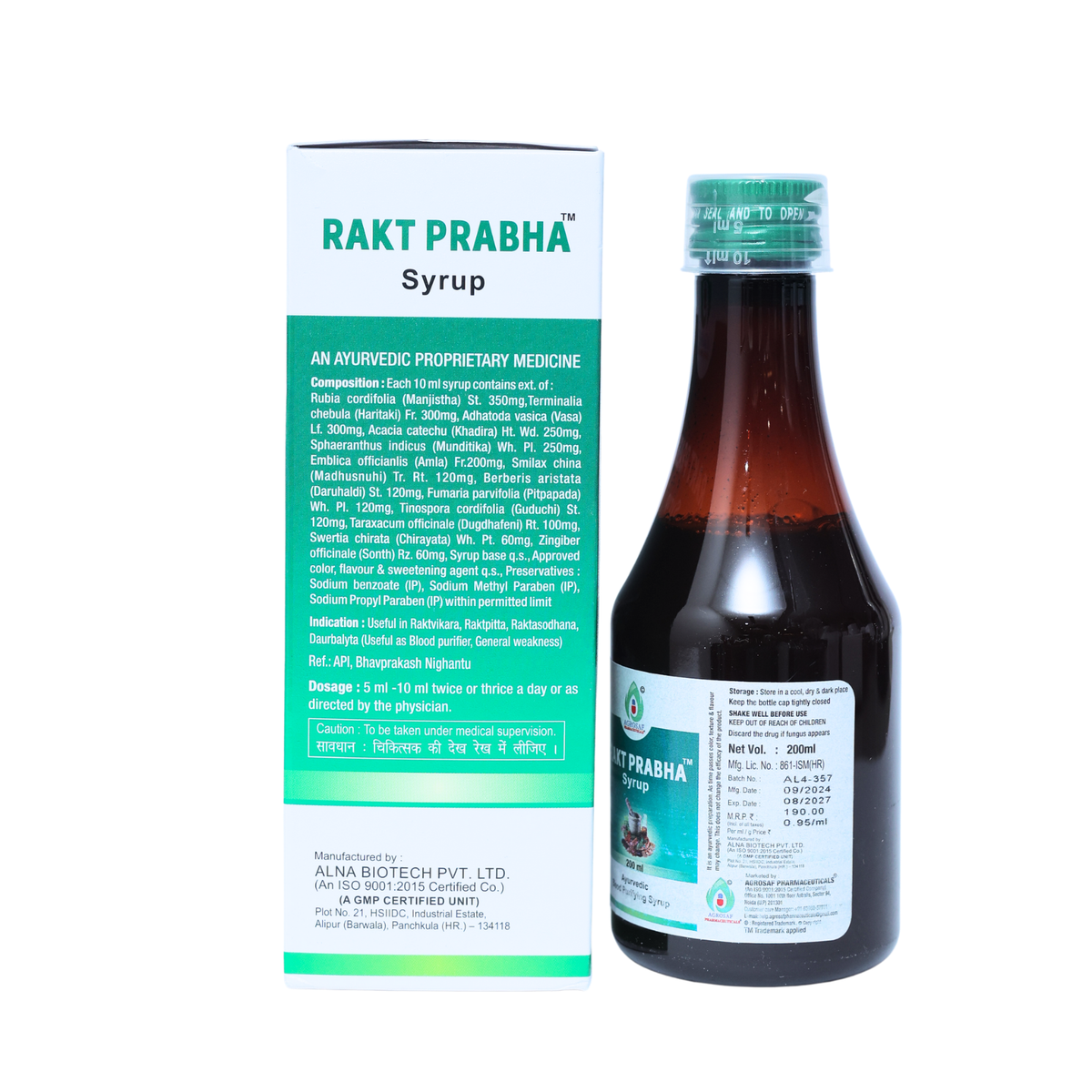 Agrosaf Rakt Prabha Syrup is a traditional ayurvedic formulation developed to support blood purification and overall skin and metabolic wellness as part of a balanced lifestyle. It combines time-tested herbs known for maintaining internal cleansing and general wellbeing.