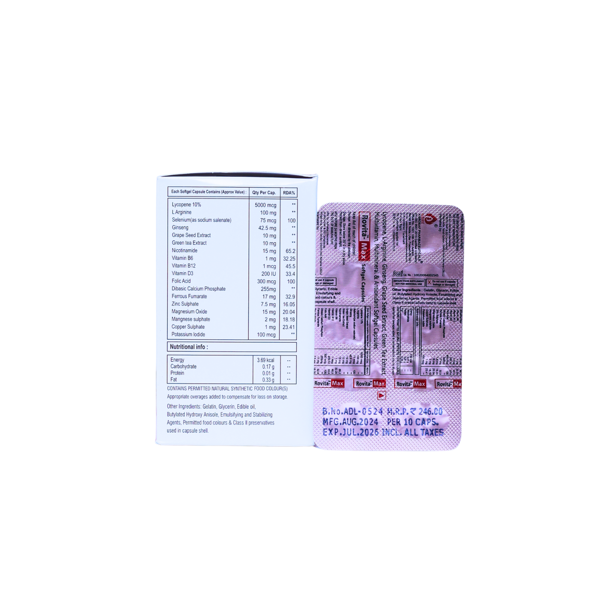 Rovita Max Capsule is a comprehensive antioxidant and multivitamin supplement formulated to support daily vitality, immunity, and metabolic balance. Its blend of essential nutrients and herbal extracts helps meet increased nutritional needs and supports overall wellbeing.