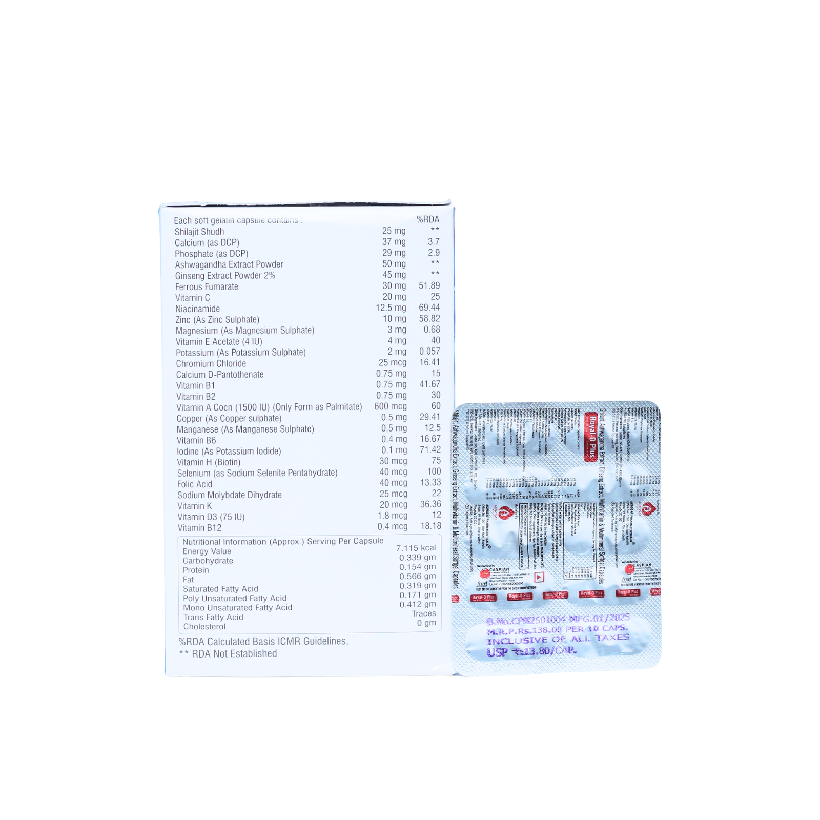 Shilajit, Ashwagandha Extract, Ginseng Extract, Calcium, Vitamin D3, Vitamin C, Zinc, Magnesium, Multivitamins, Multiminerals