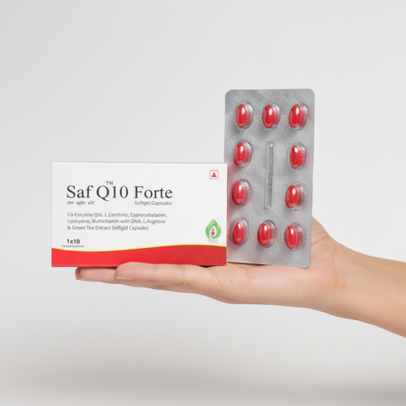 SAF Q10 Forte Capsule is a comprehensive nutritional supplement formulated to support heart health, cellular energy, and overall antioxidant protection. Its advanced blend of Co-Enzyme Q10, omega fatty acids, vitamins, minerals, and herbal extracts helps promote metabolic balance and daily vitality.