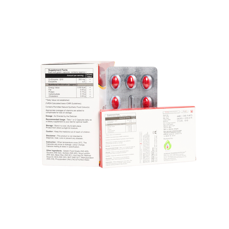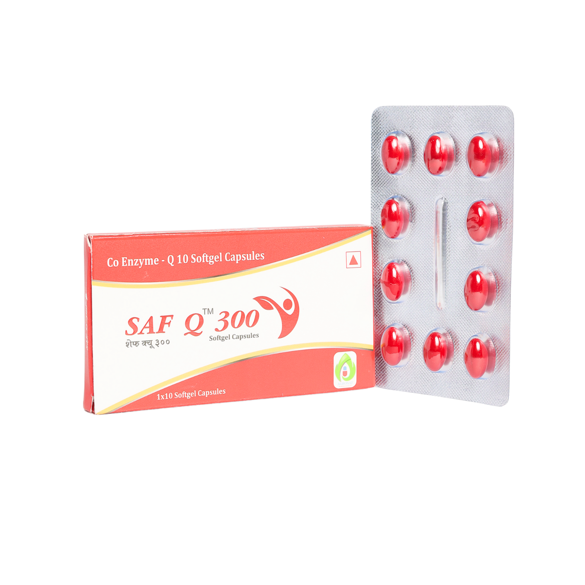 SAF Q 300 Capsule is a high-strength Co-Enzyme Q10 nutritional supplement formulated to support heart health, cellular energy production, and overall vitality. It helps support daily energy needs and antioxidant balance as part of a healthy lifestyle.