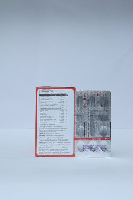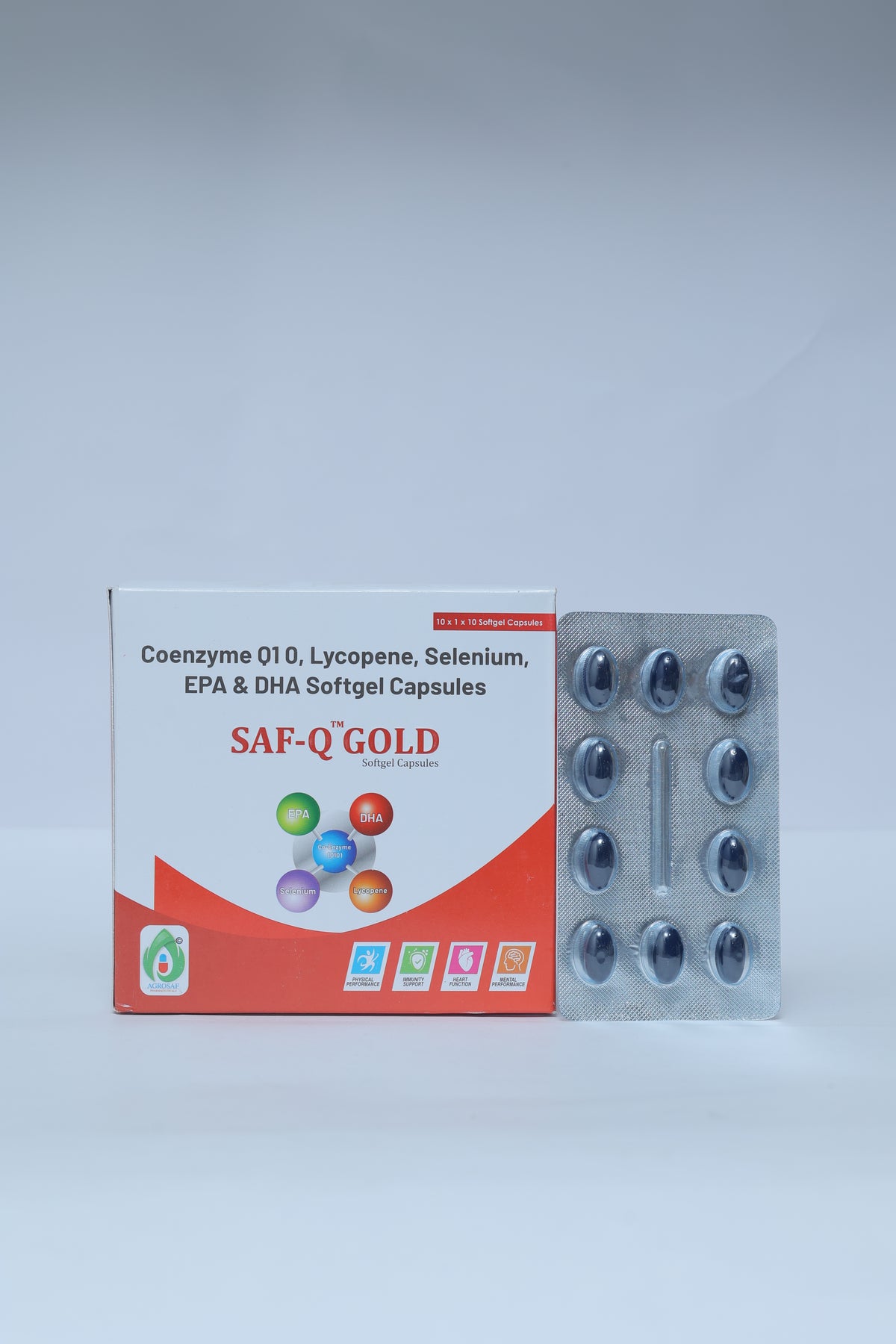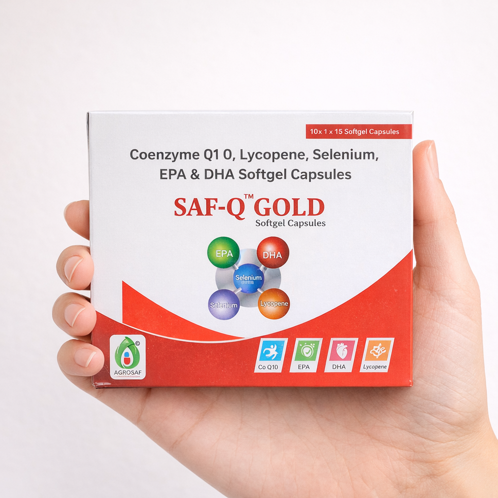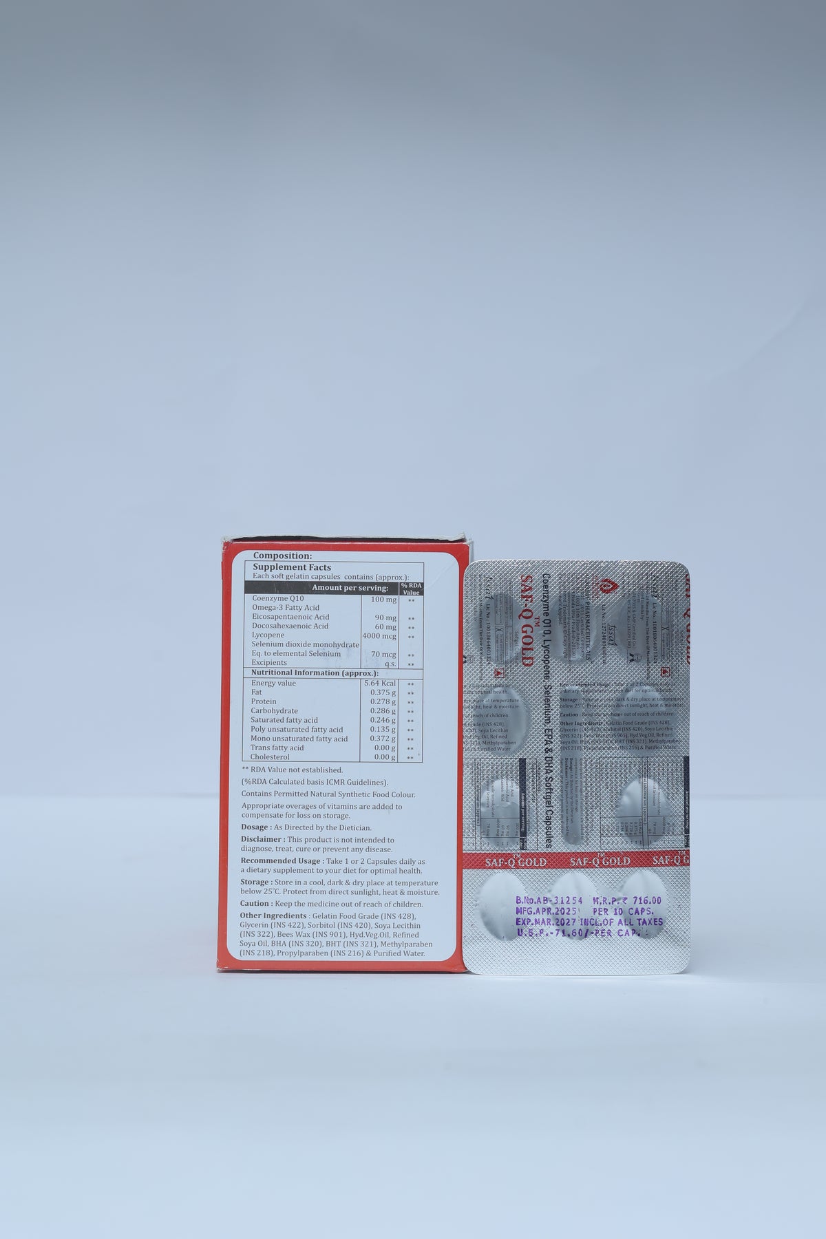 SAF-Q Gold Capsule is a premium antioxidant and nutritional formulation designed to support everyday vitality, cellular protection and overall wellness. It combines CoQ10, lycopene, selenium and omega fatty acids for complete daily nutrition.