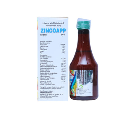 Zincoapp Syrup is a comprehensive multivitamin and mineral formulation designed to support everyday immunity, growth and nutritional balance. It blends zinc, essential vitamins, amino acids and trace minerals for daily wellness support.